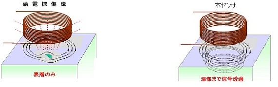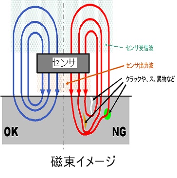 コイルから交流磁束を試験体に照射すると渦電流が発生し、発生した
